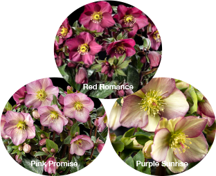 Lenten Roses, such as the Frostkiss® series starts blooming in January. The Wedding Party®, Honeymoon®, Winter Jewels®, and HGC® Spring Promise® series starts blooming in late February and March.